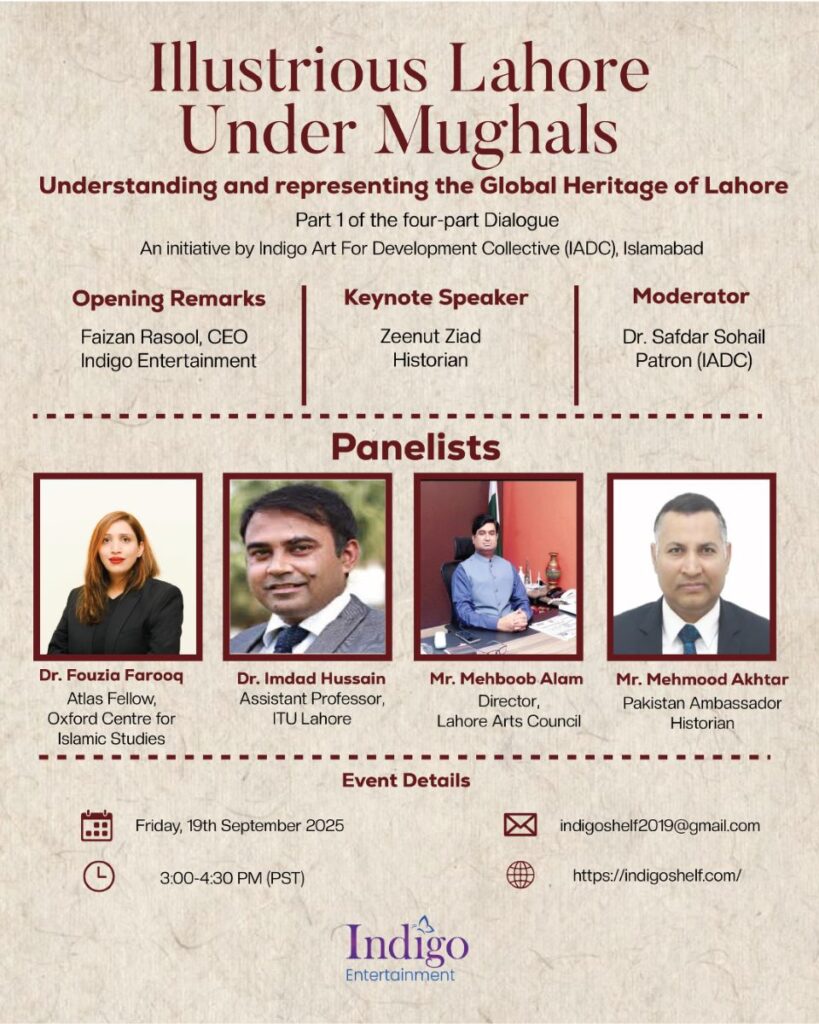 Indigo Art for Development Collective, Islamabad invites you to the Part I of a 4 Parts Dialogue on “Illustrious Lahore: Understanding and Representing its Global Heritage.”*